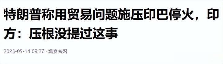 不雅察者网——特朗普称用买卖问题施压印巴息兵,印方:根底没提过这事