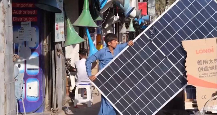 据巴基斯坦海关及动力部数据袒露,该国入口的太阳能电板板中,越过90%来自中国。多个中国品牌在当地市集占据了主导地位。面粉店雇主伊尔凡·马哈茂德就应用这些中国缔造,透澈告别了“电力荒”。