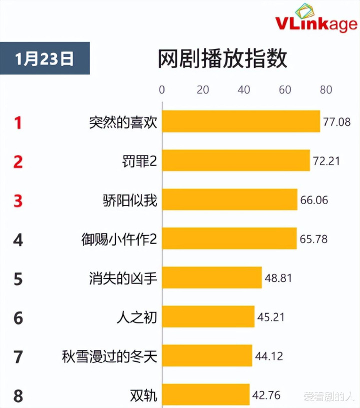 新一期的网剧播放指数名次来了,《转眼的可爱》登顶,位列第一,《罚罪2》位列第二,《骄阳似我》排第三,《御赐小仵作2》排第四,《隐藏的凶犯》位列第五,《东谈主之初》位列第六,《秋雪漫过的冬天》位列第七,《双轨》位列第八,你们可爱哪部剧呢?
