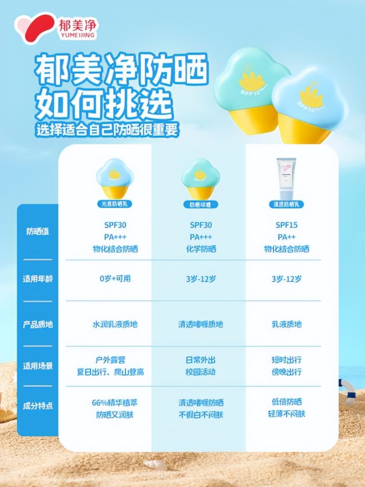 从配方到肤感,从场景到驻防效用,郁好意思净小云朵防晒霜坚抓分龄呵护、精确护肤,为0岁+宝宝专研的小云朵防晒乳,自大婴童防晒又润肤的需求;为3岁+儿童打造的小云朵防晒啫喱,修起了儿童不假白、不闷肤的清透防晒需求。两款家具齐流程严格测试,透澈妥贴儿童护肤安全尺度,亦不亏负用户对郁好意思净的赞成与信托。