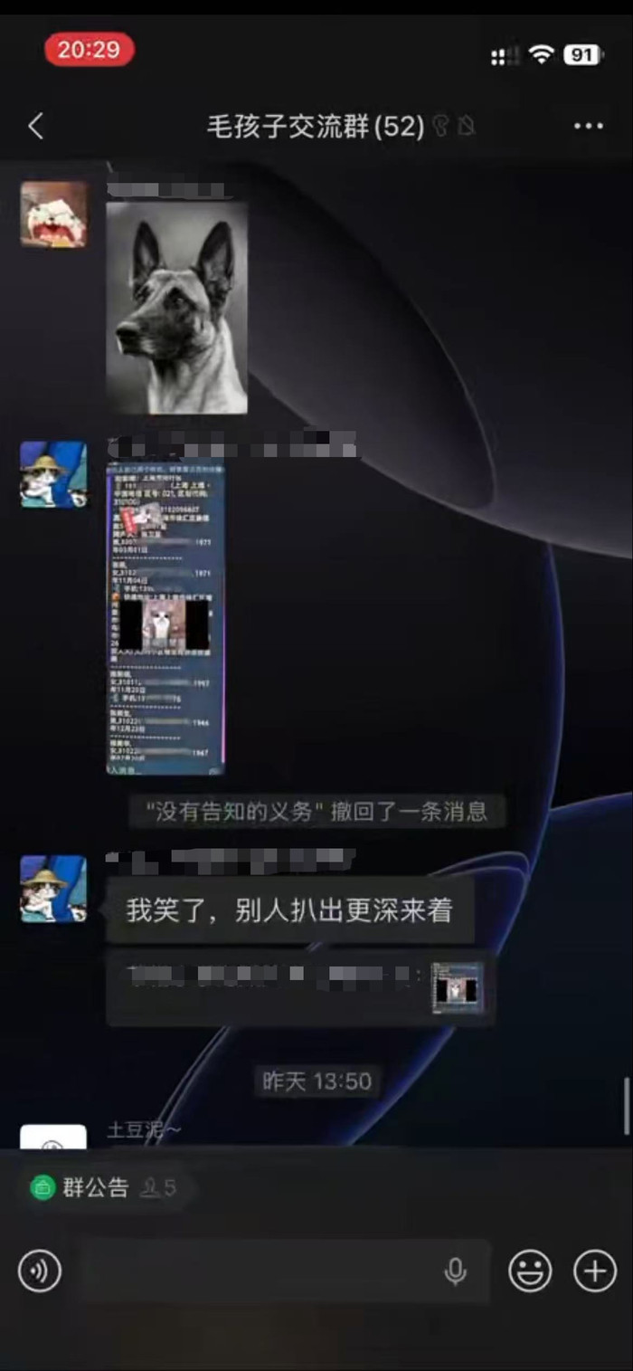 “芝麻”默示,动物友好群内有许多未成年的学生,记念这些血腥暴力的画面临未成年东谈主形成不良相貌影响。“我以为报警是任何正义东谈主士齐会作念的举动,但没思到会被坏心打击膺惩。但愿造孽者能受到法律重办。”