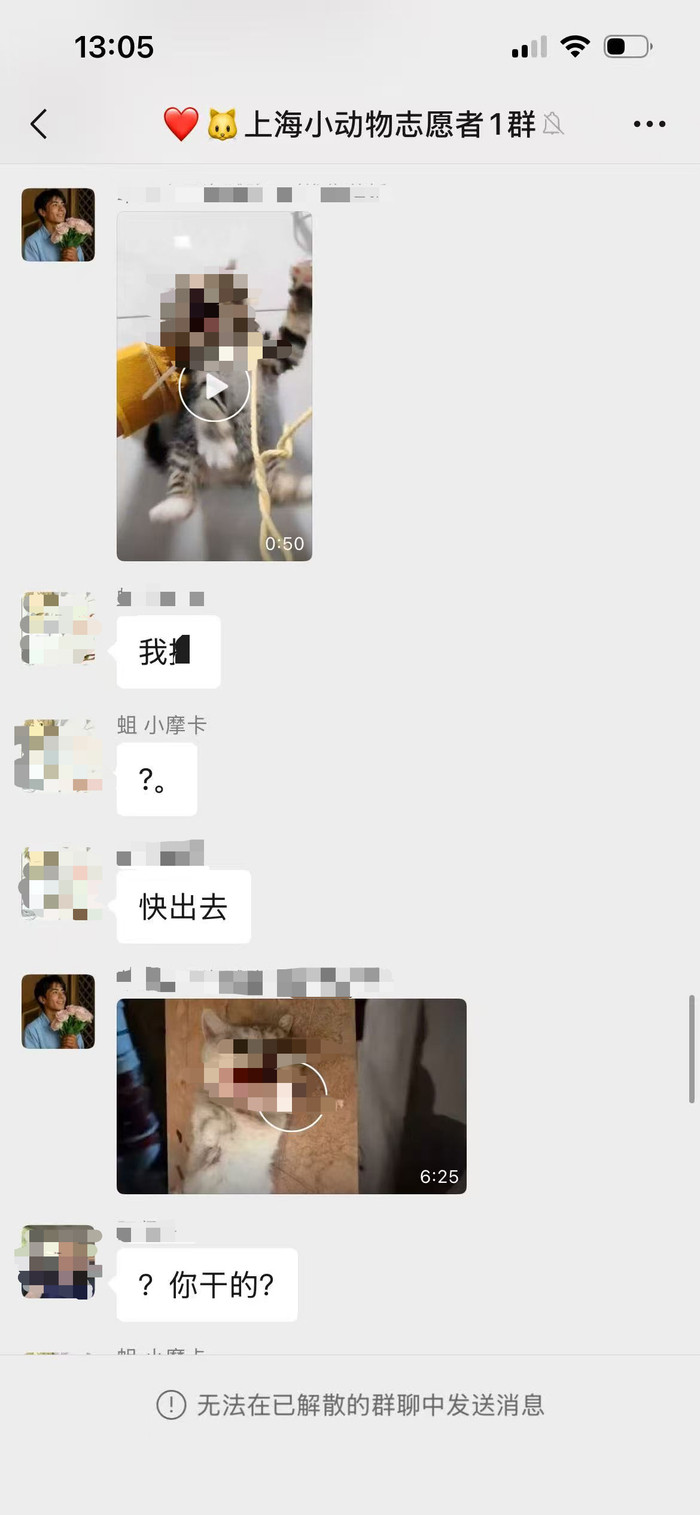 自客岁12月底到本年1月初,寰宇多个动物友好群际遇了“炸群”攻击,多名不解东谈主士涌入群组传播虐猫视频。“芝麻”默示,1月志愿者们就“炸群”的情况聚拢起来到各地派出所报案,其于1月4日进取海警方报案。“这些东谈主后续因淆乱大家顺序或采集挑衅闯祸受到了行政措置。”