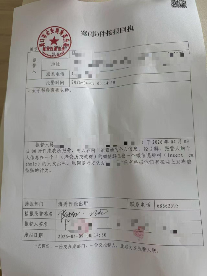 现在,“芝麻”已向海口市海秀西派出所报案。4月15日,记者致电海秀西派出所,对方默示经由要当事东谈主查询,未便涌现。