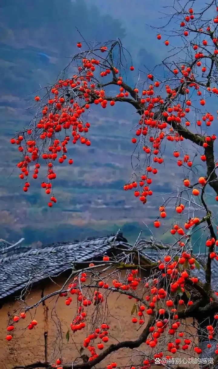 村里的老东谈主说,这柿树是爷爷辈栽下的,陪着好几代东谈主长大。