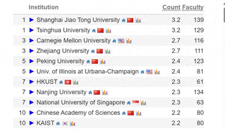 二、东说念主工智能畛域:中国高校包揽众人前十!
