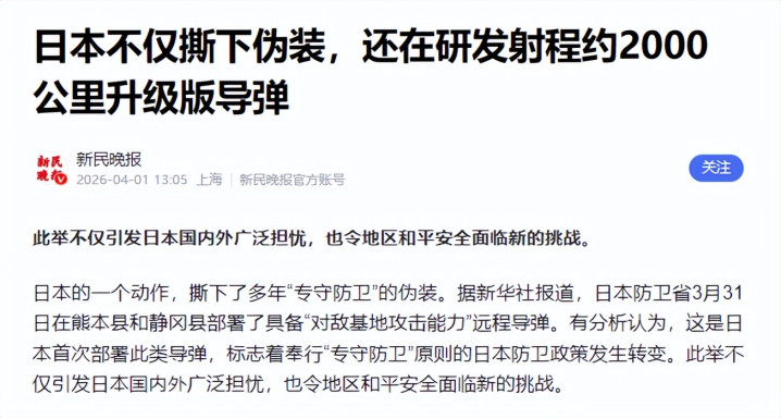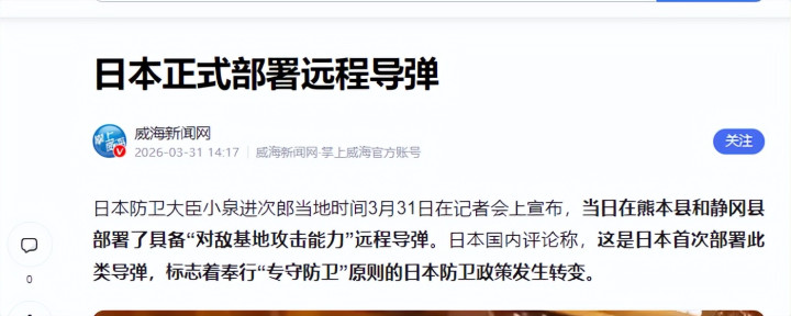 日本部署导弹、拉拢北约围堵中俄,本体上是依附好意思国、执行军事彭胀的危境举动,既造反了和平发展的期间潮水,也不顺应自己根蒂利益。