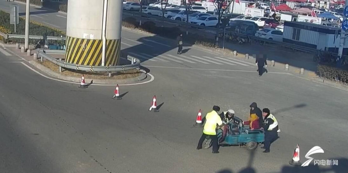 乐鱼 电动三轮车失控冲入骨干说念 青岛黄岛交警进犯羁系