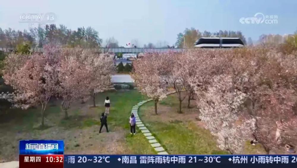 济南云巴春晖路站临近,是市民旅客相见泉城春光的优选打卡点。在这里,不错定格花海与列车同框的绝好意思陡然。从春晖路站下车,就能和空中云巴合影。头顶上方即是云巴轨谈,一回趟列车徐徐驶来。轨谈两侧是绵延的樱花林,一动一静之间,春意完全。